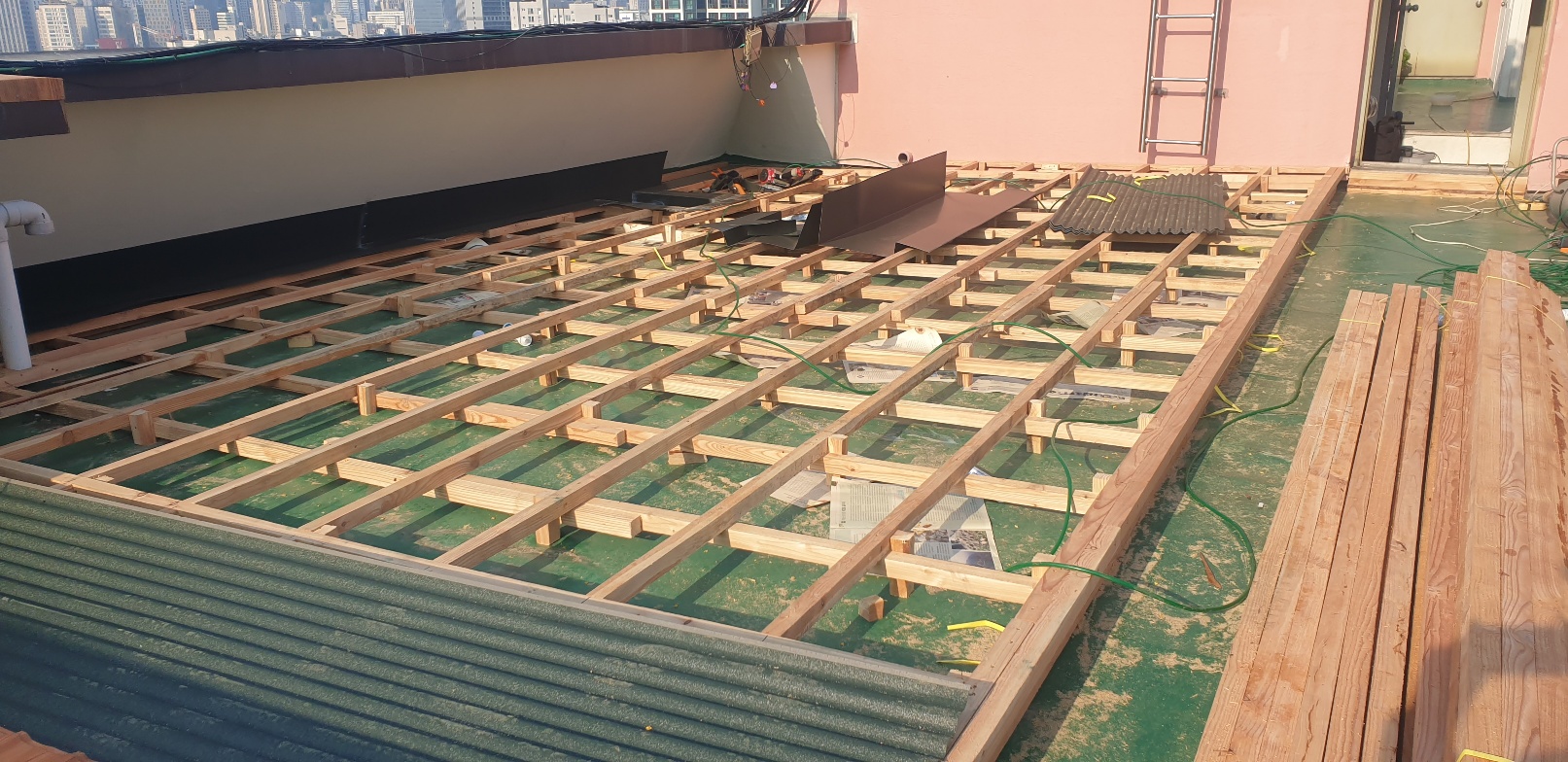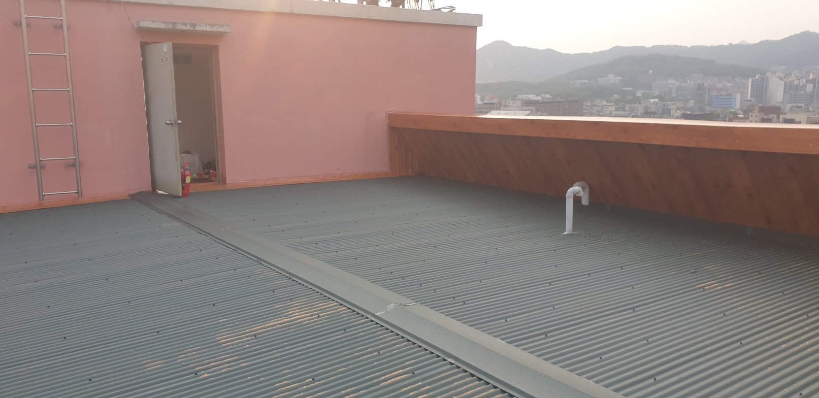 종로구 단독 아파트 옥상에 칼라시트 아연 도금 강판 방수공법으로 시공 완료